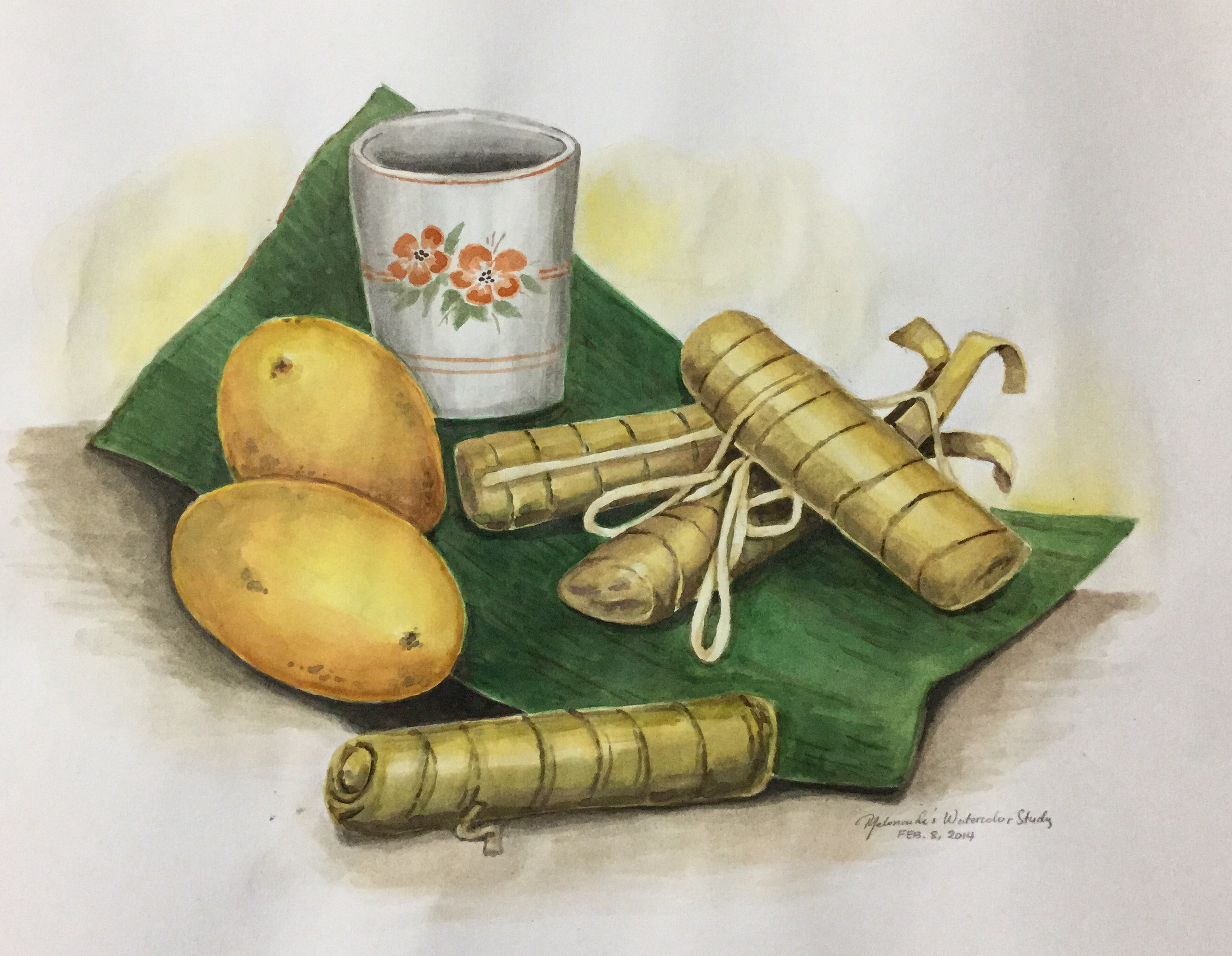 Mangoes are easily available in our tropical country – Philippines and suman is like a sticky rice that you dip on sugar. (LOL I don’t know if I described it properly). Anyways this is just a study work and not an original. My uncle asked me to copy his watercolor painting as a lesson. I found it challenging to mix colors for the suman.